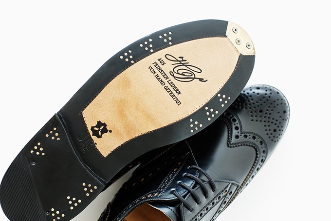 ご紹介のハインリッヒ・ディンケルアッカー(ブランド名は創業者の名に由来)は、そんなドイツ靴の伝統を継承するブランドです。1879年の創業以来、オーソペディックシューズなどを生産。1960年代に経営は創業家から離れたものの、ブランド名は、それまでに培われた技術などとともにハンガリーの首都ブダペストの郊外にある工場に委譲され、現在、30名ほどの職人たちによって、年8000足という少量生産のハンドメイドシューズが作り続けられています。と聞けば「それなら、もうハンガリーのブランドでは?」と思われましょうが、ドイツ南西部の古都ビーティッヒハイム=ビッシンゲン市に本社が置かれ、ドイツ人によって営まれているので、依然、ドイツブランドなのです。