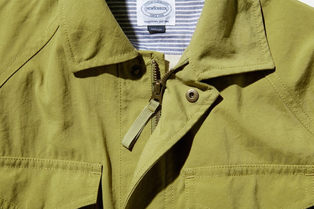 20世紀前半につくられたフィッシングジャケットでは身頃の開閉はボタンで行なわれていたが、現在は利便性を考慮してジップタイプが主流になっている。こちらのアイテムではヴィンテージを意識したブロンズ色のジップを採用。前立てを比翼仕立てにするなど、細かなディテールに気を配り、トラディショナルな仕上がりに。