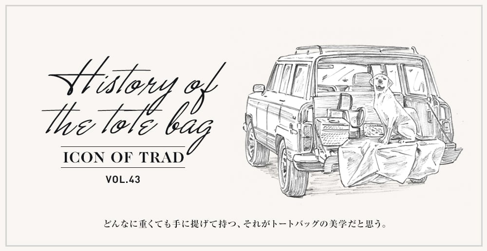 手提げ式のなかでトラッドな味わいを持つバッグといえば、その代表はトートバッグであろう。日本では米国西海岸のアウトドアスポーツブームが起こった1970年代初めあたりからトートバッグがアイビーアイテムのひとつに認知されたように思う。アウトドアのヘビーデューティーなアイテム(たとえばマウンテンパーカ)とアイビーをミックスさせた『ヘビアイ』が流行した頃である。
