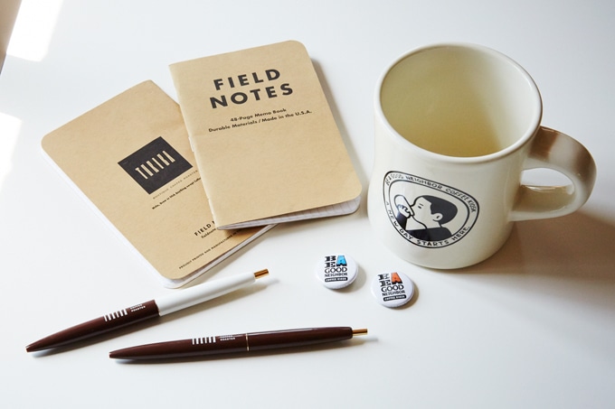 マグカップと缶バッジは東京・千駄ヶ谷「ビー・ア・グッドネイバー」の物。