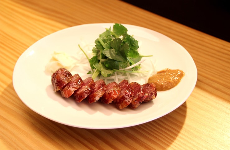 飲み込むまでの数十秒、八角の香りが鼻へと常にふわりと供給され続けます。肉のうま味が後を引く余韻も繊細なので、あごを動かしながら、図らずも目をつぶってしまいそう。着席した瞬間に注文して、何も味わっていないバージンの舌でご堪能いただきたい! のです。添えられるネギやニンニク、そしてパクチーや自家製の味噌と一緒に食べれば、これまた味わいが重層的で、ワインに合わせたいというお客さんも多いそう。