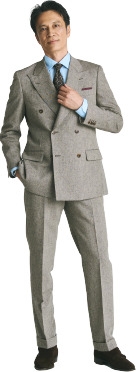 だったら同じ襟型のダブルブレストでもいいのかな。 - 久保田さんじゃあ、ダブルで!スラックスはワンタックがいいです。