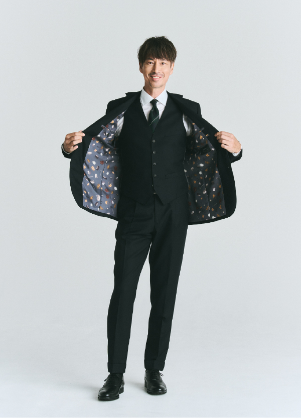 - 久保田さんちょっと変化は欲しいですね。例えばピークドラペルとか。…黒だとちょっとタキシードっぽい…?
