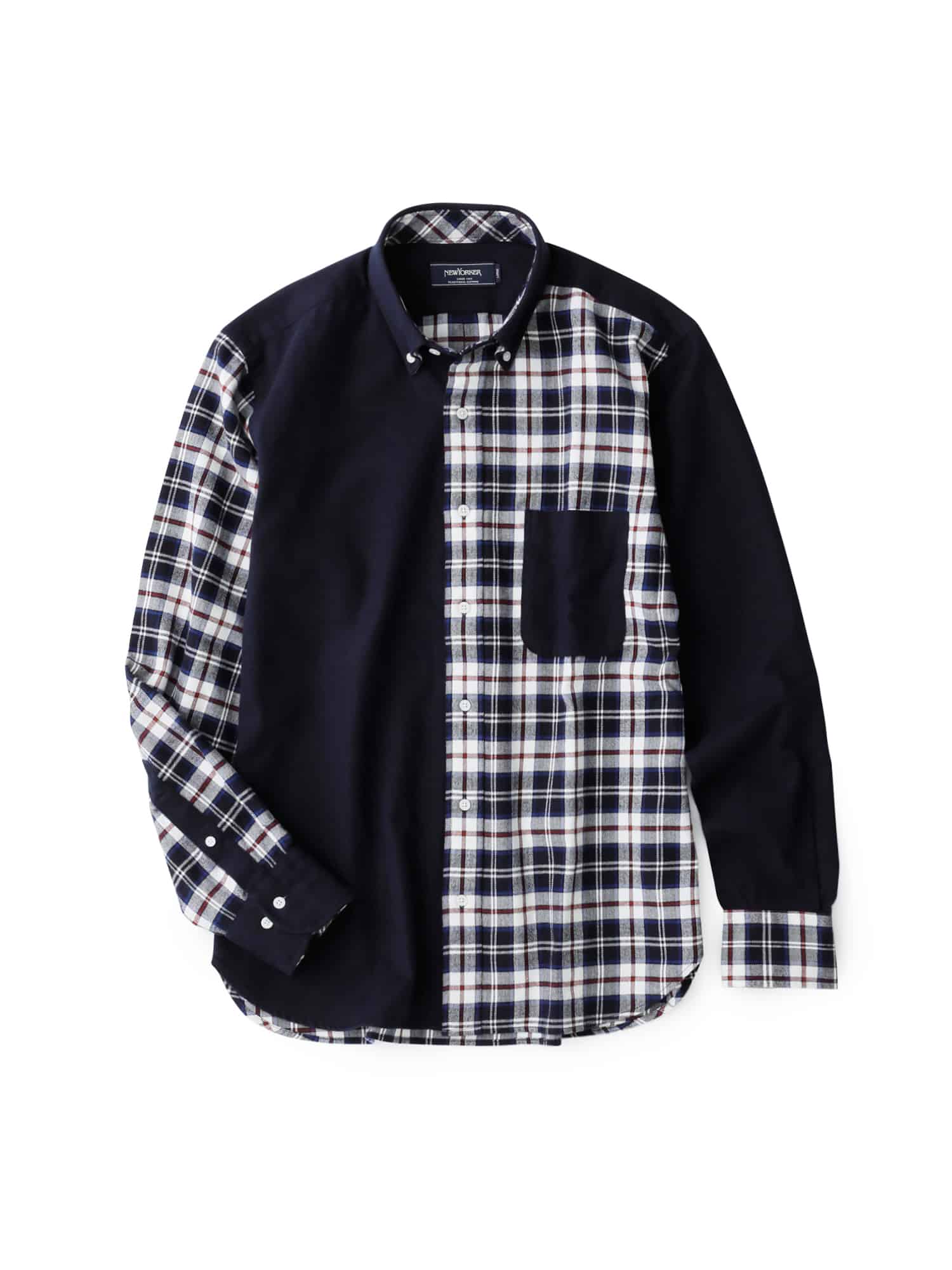 ハウスタータン柄と無地を組み合わせたクレイジーパターン長袖シャツ。オーガニックコットン100%の生地を起毛し柔らかな風合いに仕上げました。秋口は単品で。冬はニットや肉厚カーディガンと合わせたりとシーズン長く楽しめる1枚。