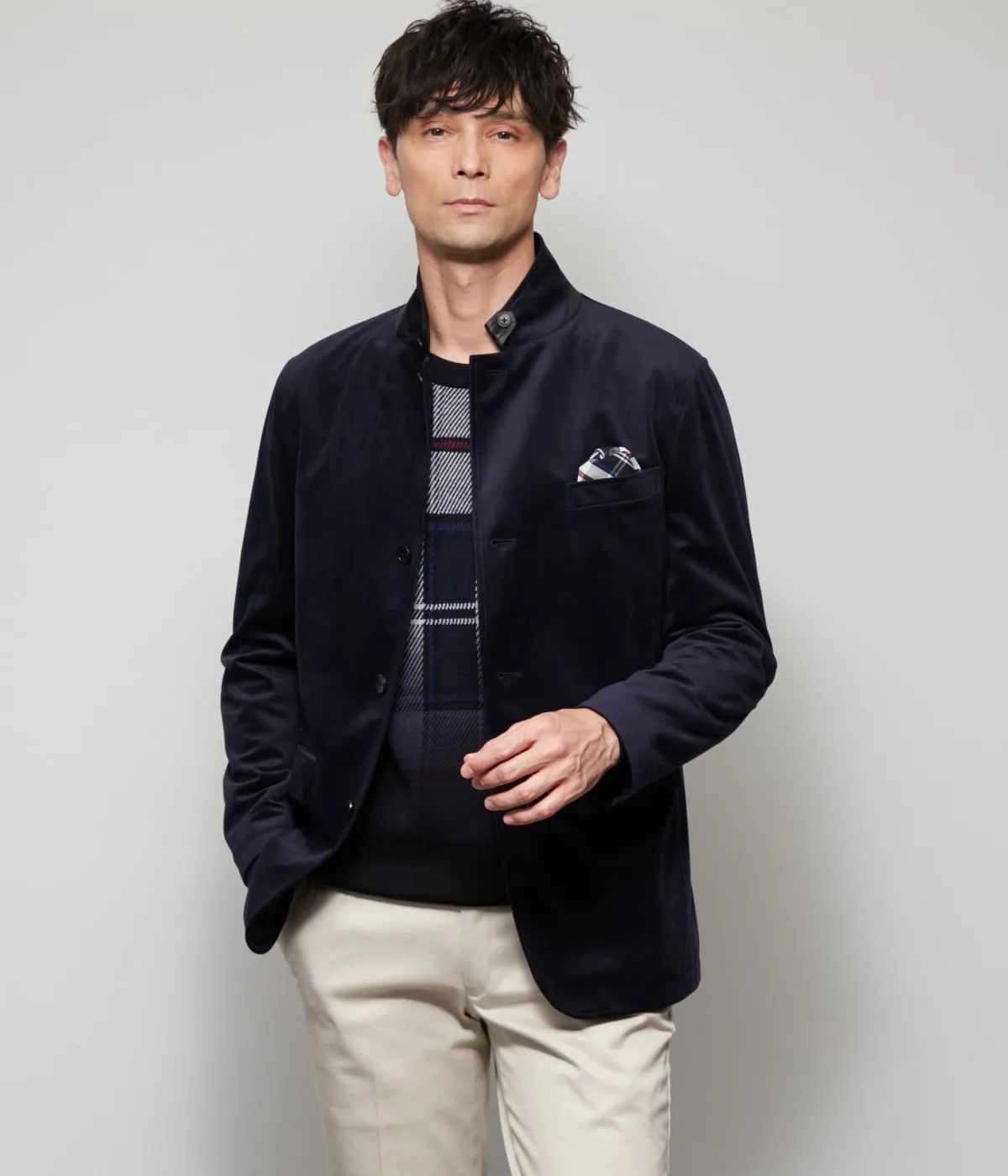 - 【ウォッシャブル・ストレッチ】斜めカットコール カッタウェイカラーコンバーチブルアウター(セットアップ対応)