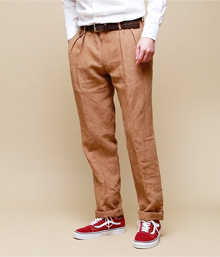 BERKLEY初となるリネンワイドパンツは、クラシックなディテールでスタイリッシュな仕上がりに。