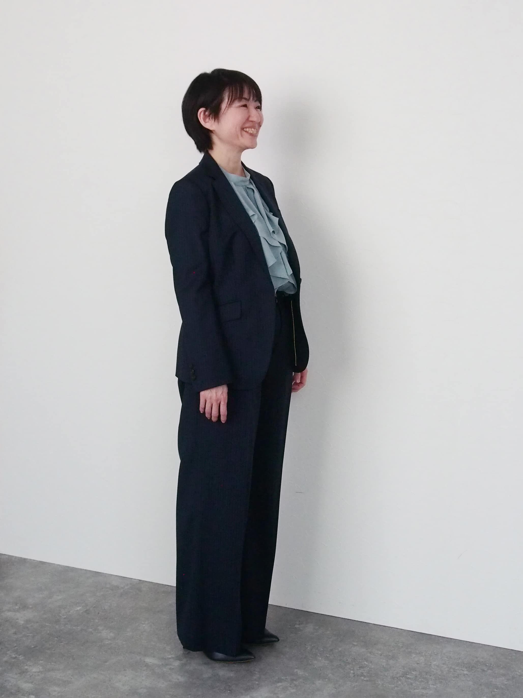 今回スタッフが仕立てたアイテムは、セレモニー用のパンツスーツ。
