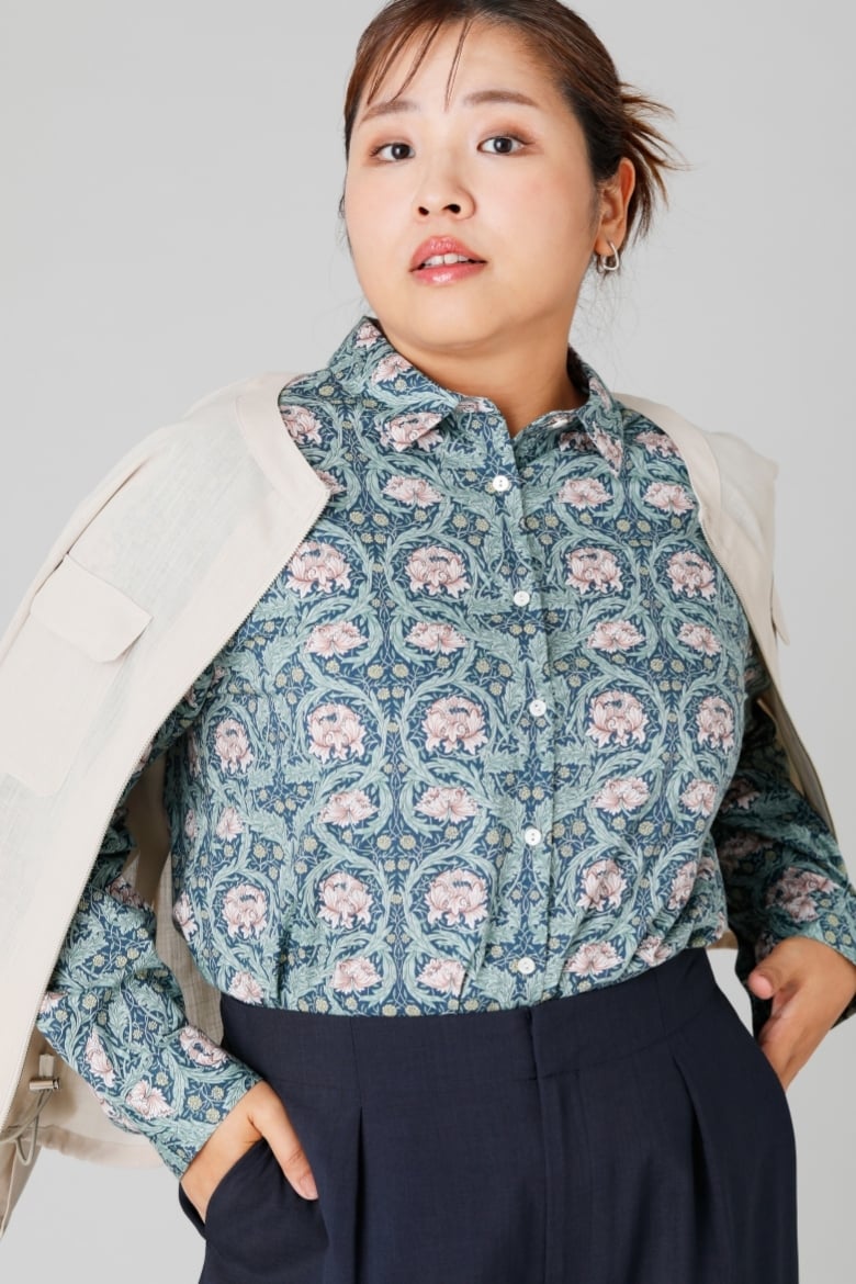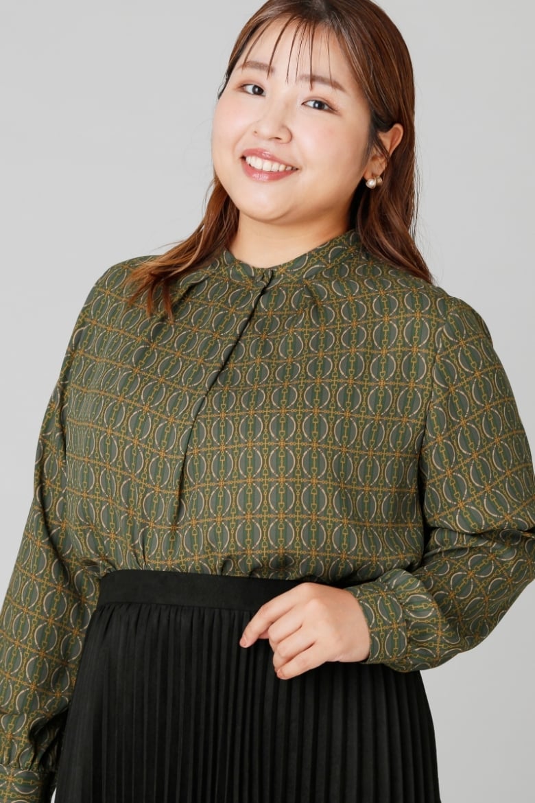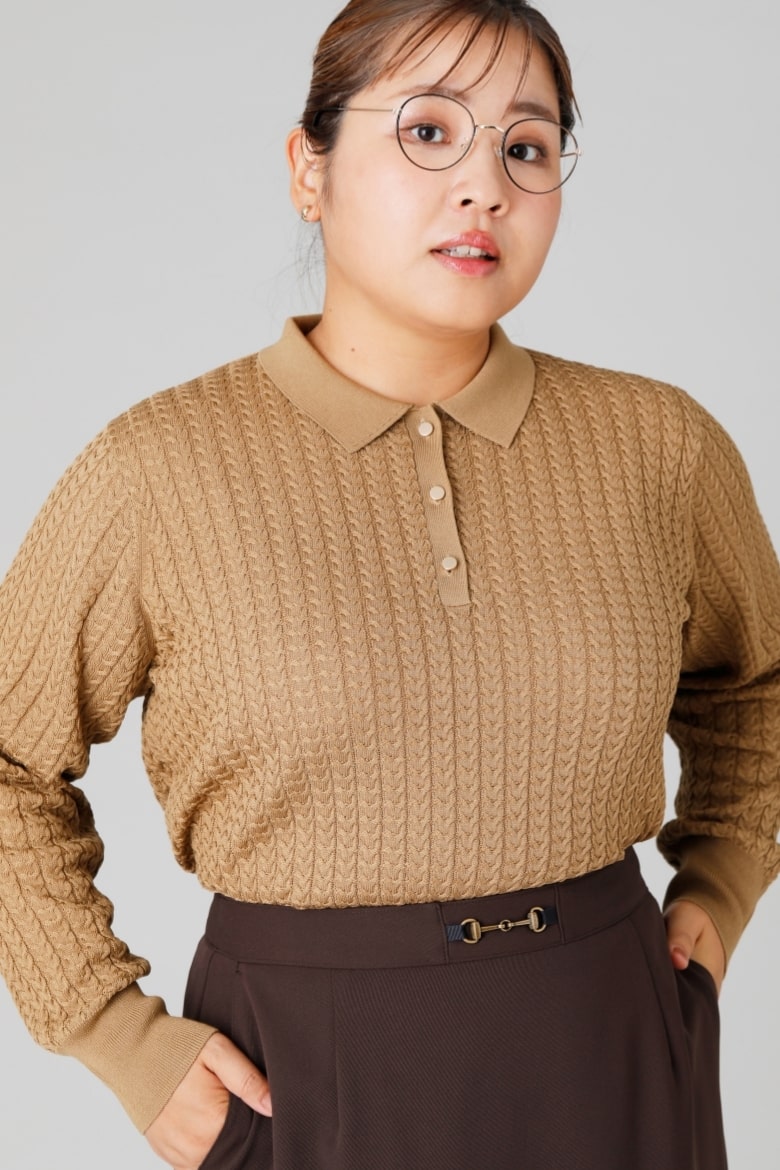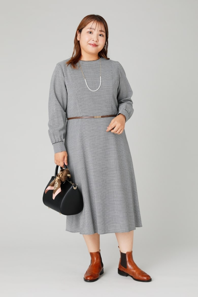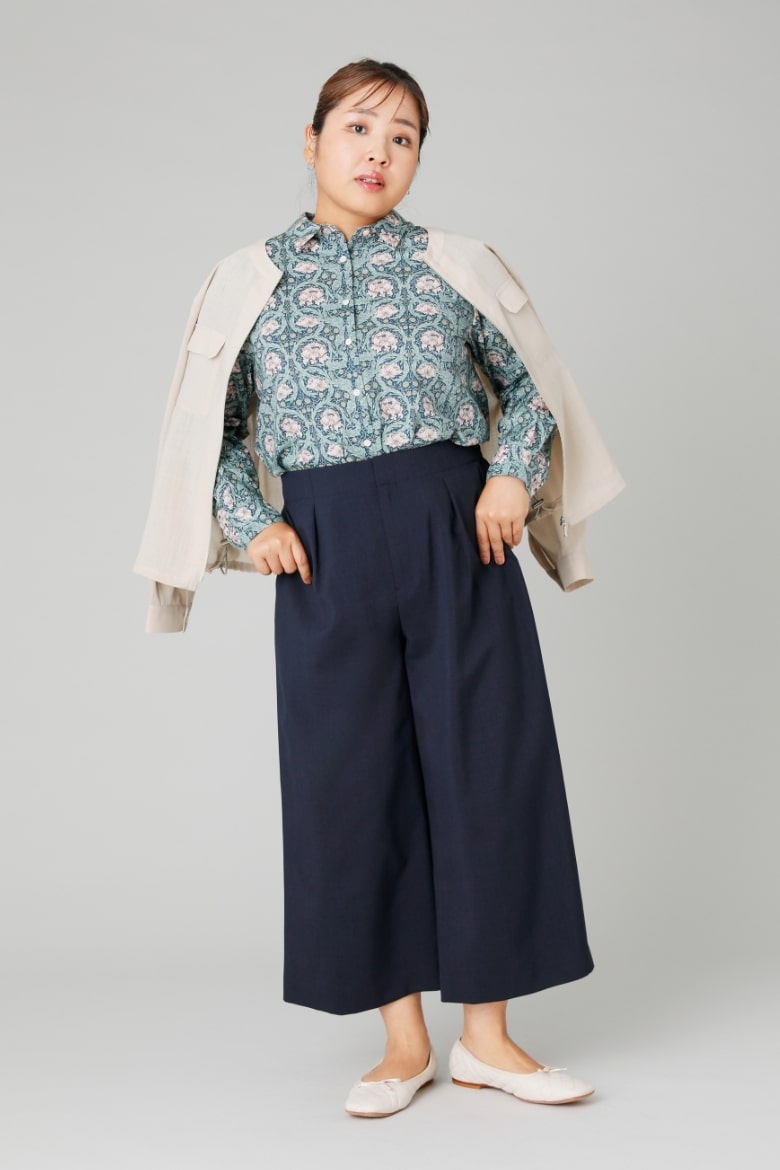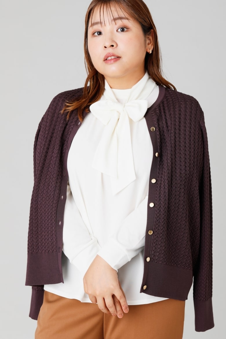 秋らしい空気を感じながらも、日中はまだ軽やかな装いで過ごしたいこの時期。ジャケットに頼らずきちんと感を演出できるオフィススタイルをプラスサイズモデルの吉野なおさんに着ていただきました! 吉野なおnao yoshino プラスサイズモデル・エッセイスト 2013年、雑誌『ラ・ファーファ(発行:文友舎)』第1号目からモデルとしてのキャリアをスタート。プラスサイズのファッションモデルとして活動しながら、摂食障害の経験をもとにコラム執筆やイベント講演なども行う。著書に『コンプレックスをひっくり返す~見た目のなやみが軽くなるボディ・ポジティブな生き方~』(発行:旬報社)。 01 知的かつ親しみやすい秋色パンツスタイル 洗濯機洗いOKでシワになりにくいブラウス見えカットソーは、忙しい毎日に頼れるアイテム。リボン結びしたボウタイが、顔周りに華やぎを添えてくれます。縦に流れるケーブル編みニットやテーパードパンツで、スタイリッシュにまとめました。[着用サイズ:全てL15号] Cardigan ¥20,900 CHECK Cut&Sewn ¥15,400 CHECK Pants ¥18,700 CHECK 02 総柄ブラウスはくすみカラーで大人な表情に 落ち着いたトーンの柄ブラウスは、普段シンプルな装いが多い方にも取り入れやすい1枚。スエードタッチのプリーツスカートで季節感と縦長シルエットを演出しました。小物でホワイトを足せば、程よい抜け感のある着こなしが完成![着用サイズ:全てL15号] Blouse ¥23,100 CHECK Skirt ¥28,600 CHECK Bag ¥36,760 CHECK Shoes ¥23,100 CHECK 03 小物で差がつくこなれワンピーススタイル 1枚でサマになるワンピースは、ラクな着心地も好印象も叶う優秀アイテム。パールのアクセサリーや革小物をプラスすると、メリハリのある着こなしに仕上がります。オフィスではもちろん、会食やお仕事終わりのお出かけにも対応できるスタイルです。[着用サイズ:全てL15号] Dress ¥37,400 CHECK Necklace ¥6,600 CHECK Belt ¥11,000 CHECK Scarf ¥16,500 CHECK 04 花柄をシックに見せる大人の引き算コーデ 甘くなりがちなフラワー柄のアイテムは、青みのトーンでクールな表情に。リラックス感のあるワイドシルエットのパンツやフラットシューズを合わせて、クラシカルな印象のシャツを程よくカジュアルダウンさせました。[着用サイズ:全てL15号] Blouson ¥28,600 CHECK Blouse ¥25,300 CHECK Pants ¥18,700 CHECK 05 トラッドスタイルは鮮やかカラーで軽快に カラーアイテムを取り入れるなら、きちんと感も演出できるハイゲージニットがおすすめ。肌寒い時にサッと羽織れるアンサンブルは、オフィスでの体温調節にも役立ちます。チェック柄スカートとローファーを合わせれば、トラッド感のある着こなしに。[着用サイズ:全てL15号] Cardigan ¥20,900 CHECK Knit ¥18,700 CHECK Skirt ¥41,800 CHECK Necklace ¥8,800 CHECK 06 定番ブラウンを華やかにアップデート 秋らしく洗練された雰囲気を感じる、ブラウントーンのグラデーション。襟元のメタル釦やスカートのビットパーツで、落ち着いた色合いにツヤ感をプラスしました。足元はあえてショートソックス×スリッポンでさりげなく遊び心を添えて。[着用サイズ:全てL15号] Knit ¥18,700 CHECK Skirt ¥19,800 CHECK Bag ¥36,740 CHECK Shoes ¥27,500 CHECK 掲載アイテム一覧はこちら Lサイズ新作アイテムはこちら Lサイズ取扱ショップ一覧はこちら 試着・来店予約をする PAGE TOP