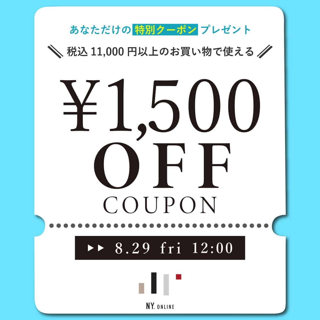 NYオンラインでご利用いただける【1,500円OFFクーポン】をプレゼントさせていただきました!