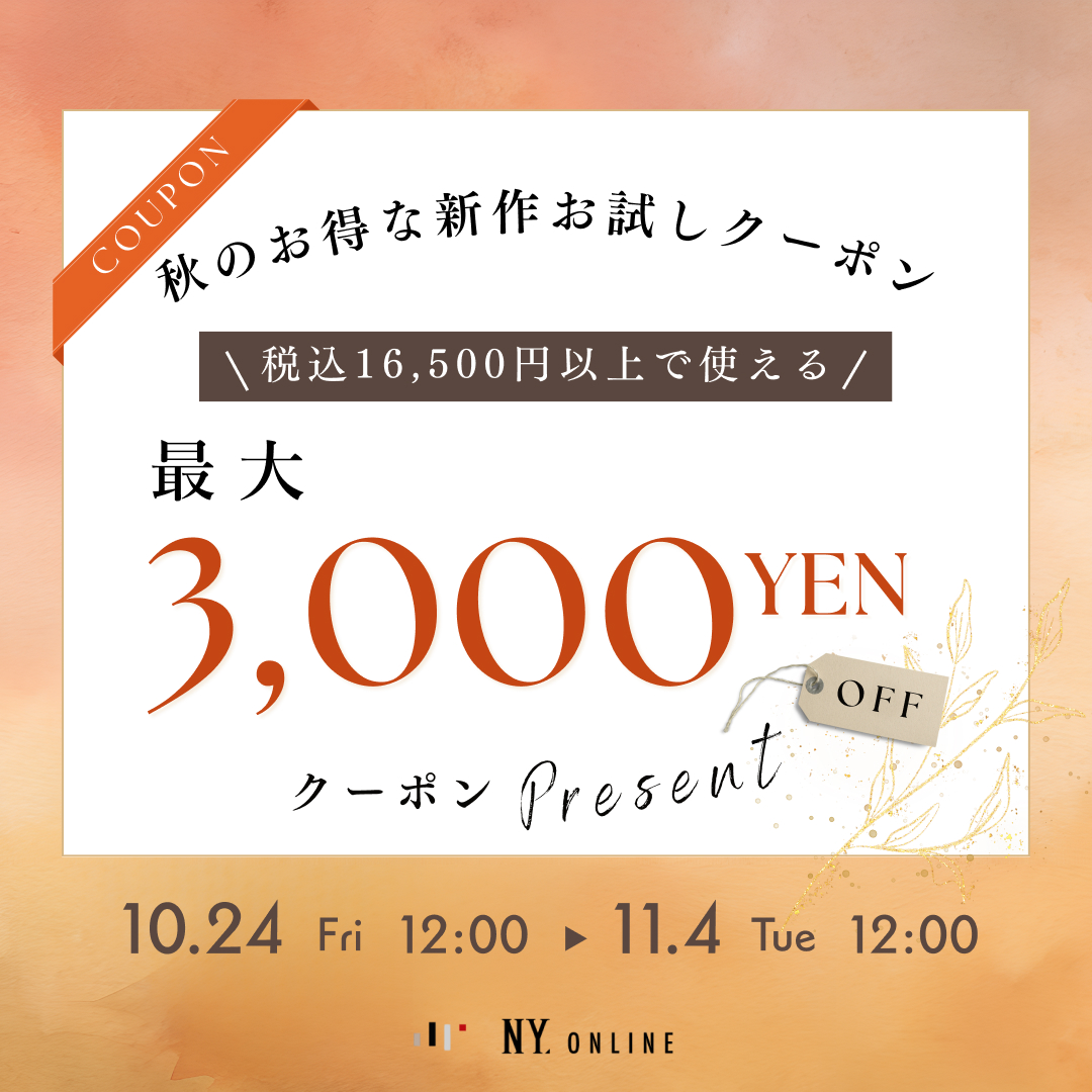 クーポン名:秋の新作お試し【3,000円OFFクーポン】