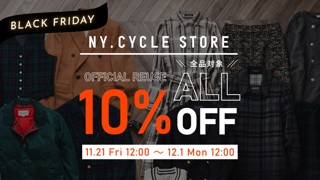公式リユース販売サイト「NY.CYCLE STORE」では、BLACK FRIDAY SALEを開催!全商品を対象に表示価格より【10%OFF】とさせていただきます!