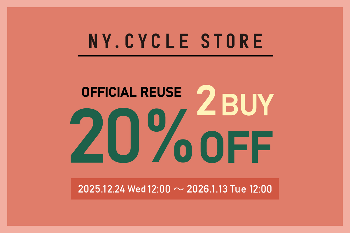 公式リユースストア「NY.CYCLE STORE」では、全商品対象、2点以上お買い上げで20%OFFさせていただきます!