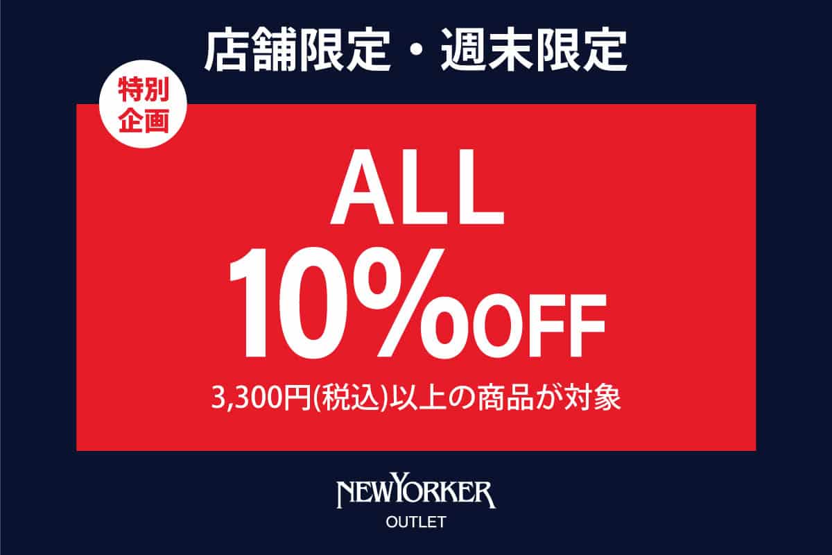 【ニューヨーカーアウトレット一部店舗・週末限定】全品10%OFFのご案内